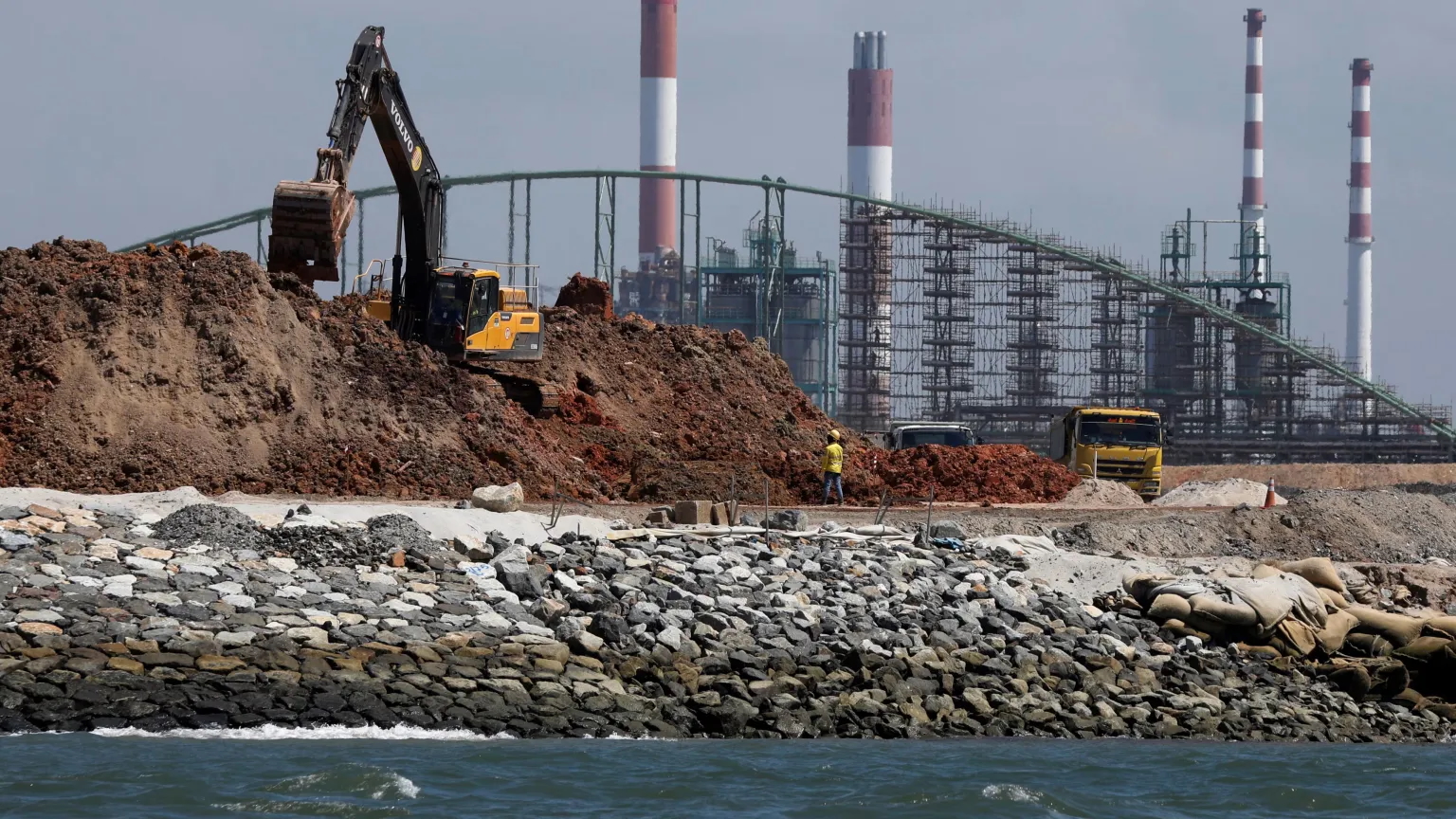 Land reclamation on Singapore’s Jurong Island in 2019: Marine clay, generated during reclamation, can be converted into low-carbon concrete. © Reuters